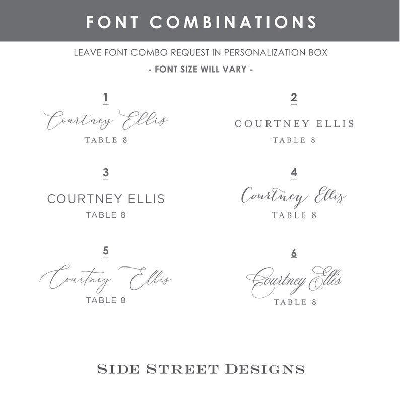 Each 3.5" x 2.5" folded place card is printed on Black card stock, or choose other colors from our card stock color collection.