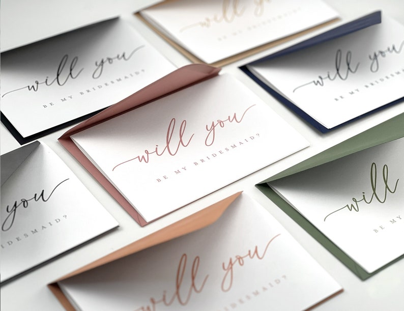 Different Colored Bridesmaid Cards, Folded Card Blank Inside with Colored Matching Envelopes for Bridal Party, Bridesmaid Proposal Card, Bride Squad