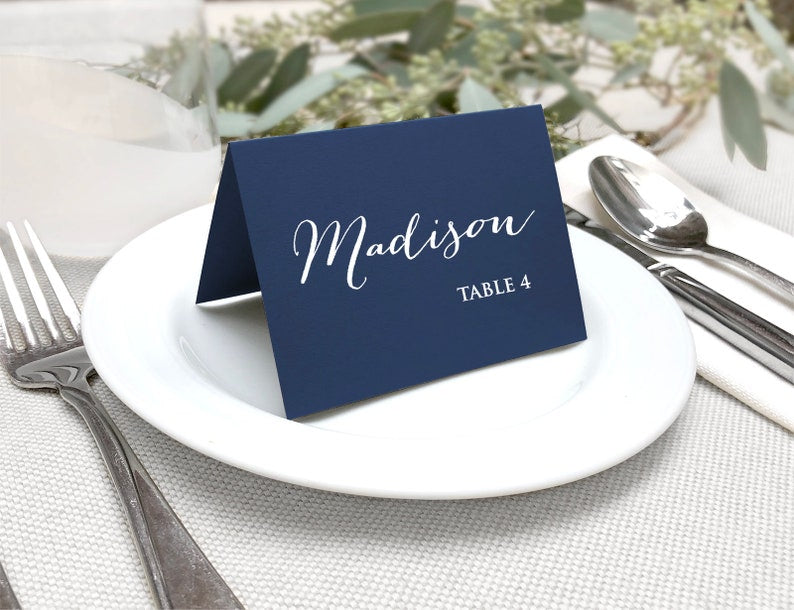 Materials: Cardstock, Rounded Corners, Navy Blue Table Numbers, Printed Table Numbers, Simple Table Numbers