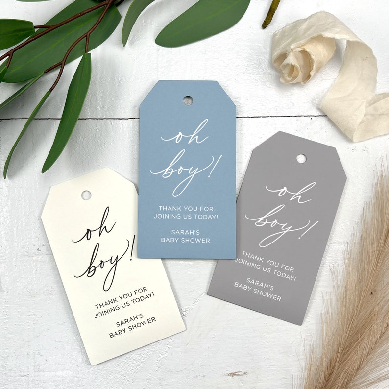 Oh Boy! Printed and Shipped from our in house design studio, all your favorite colors of baby shower favor tags for your baby shower favors and baby shower game prizes! More colors being added daily to accommodate all your baby shower themes.