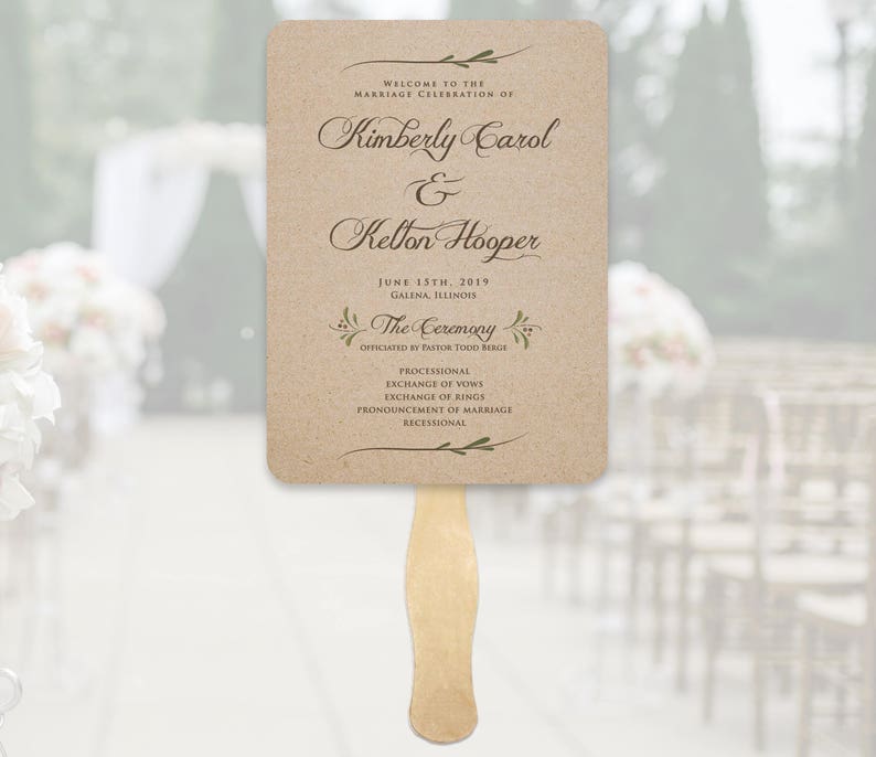 These Wedding Ceremony Program Fans are new this summer. Give your guests something unique to hold onto while you say your I Dos. These fans are not only excellent for outdoor summer, spring or fall weddings, they also make great programs for indoor ceremonies as well! This listing is for printed ceremony fans. We print these program fans and ship them to you along with the beautiful wooden sticks. All you need is a couple glue sticks to assemble these at home.