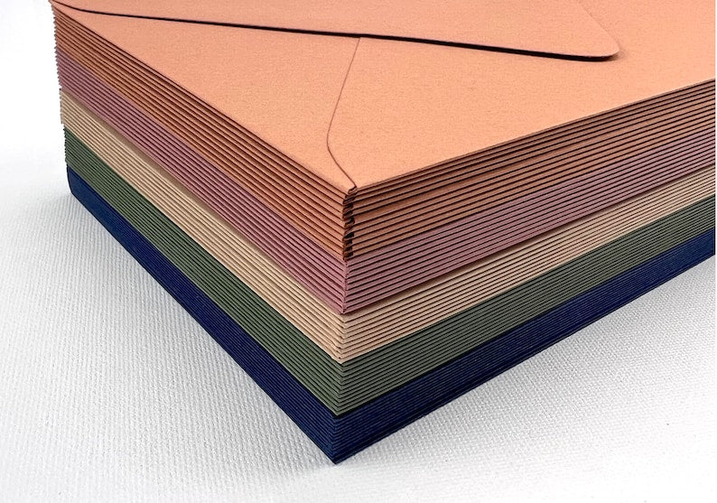 • (1) Beautiful colored euro-flap envelopes made of Recycled Paper with 30% Post-Consumer Waste