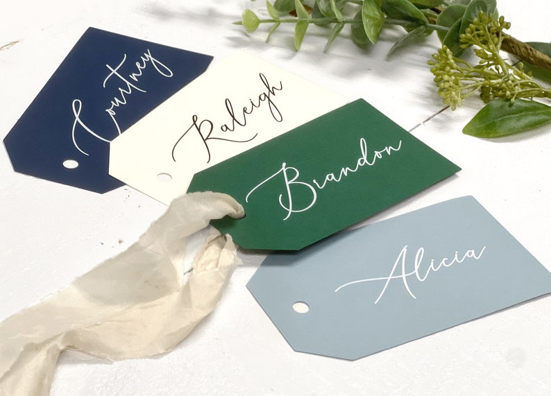 These are the perfect size to be tucked into a napkin at each place setting. Or on top of beautiful colored napkins or plates.